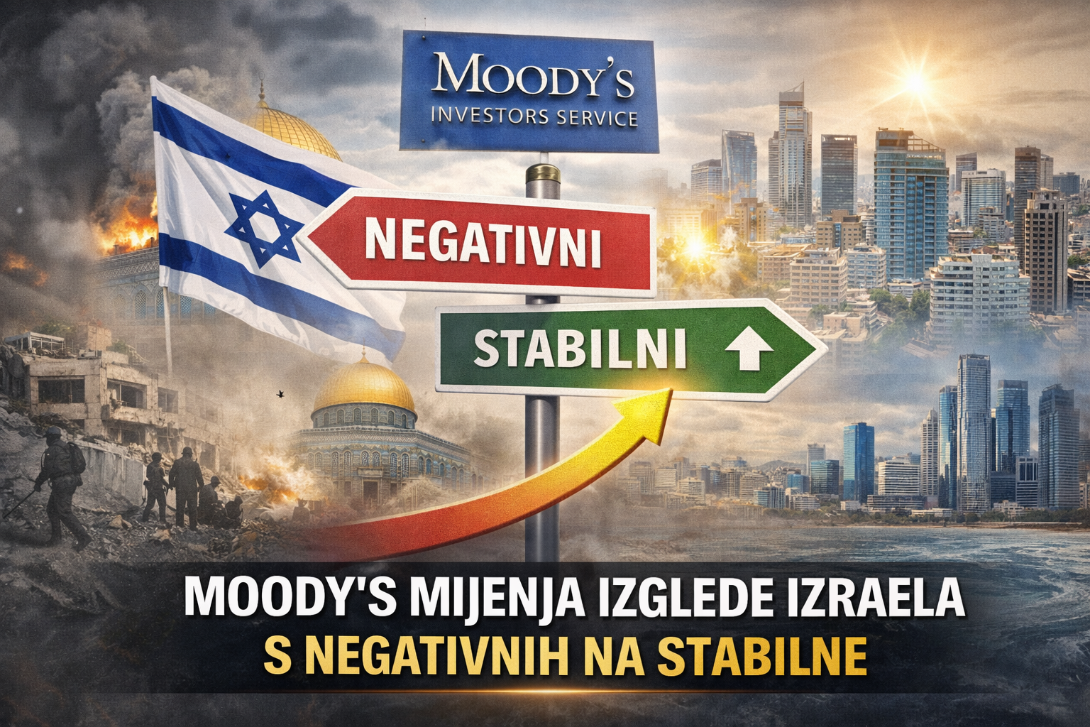 Promjena izgleda odražava Moody’sovu procjenu da je izloženost Izraela geopolitičkom riziku “značajno smanjena s vrlo visokih razina”, smanjujući rizik daljnjeg slabljenja suverenog kreditnog profila zemlje.