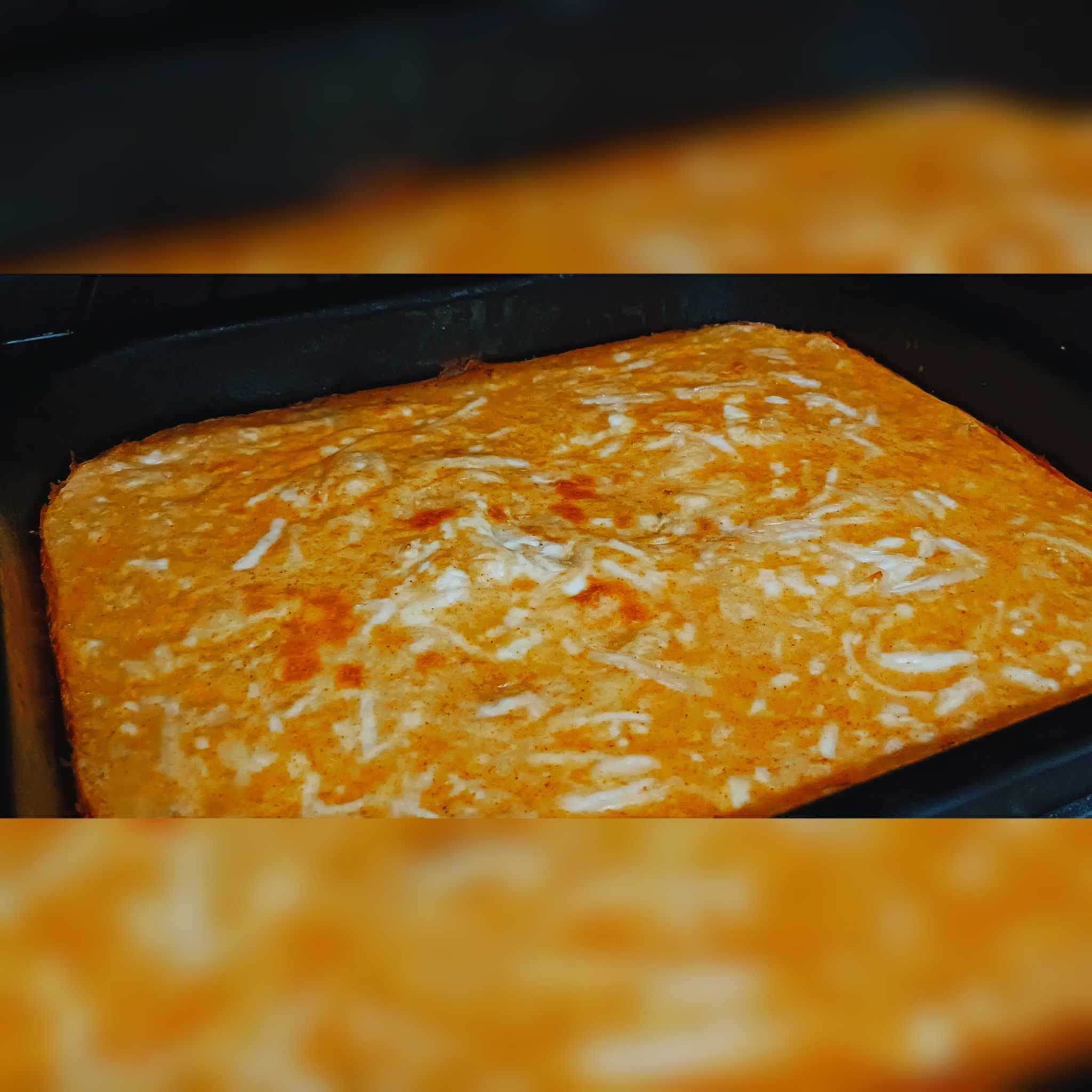 Sve dobro sjediniti i izmješati, izvaditi jelo i rerne nakon 20 minuta i preliti ga prelivom, po vrhu narendati sir. Vratiti u rernu na 200 stepeni još 15 minuta.