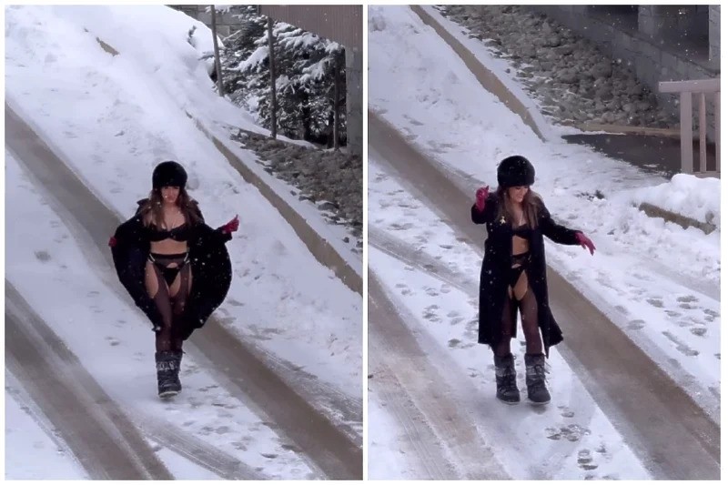Naime, influenserica je objavila snimku na kojoj šeta po snijegu u donjem vešu i halterima. Od hladnoće se zaštitila toplim čizmama, kapom i dugim kaputom.