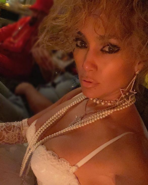 Lopez je elegantnoj odjeći dodala niz Schiaparelli komada nakita, uključujući zlatni broš na boku, nadrealističke naušnice u obliku oka ukrašene kristalima, masivni prsten i neobične zlatne sunčane naočala. Upotpunila je izgled zlatnim štiklama.