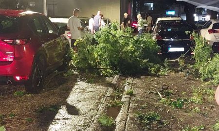 Snažan vjetar čupao je drveće, letjele su roletne, a šteta je pričinjena i na automobilima.