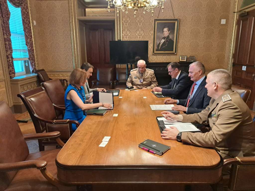 Koordinatorica Vijeća za nacionalnu sigurnost Cara Abercrombie naglasila je čvrstu opredijeljenost Vlade SAD na pružanju podrške BiH na putu ka EU i NATO. „Pomoći ćemo sve reformske procese u MO i OS BiH i pozdravljamo usaglašeni prijedlog strukture novog generalskog kora. Pentagonu ću proslijediti na razmatranje inicijativu da se u BiH poveća prisutnost američkih snaga“, naglasila je.