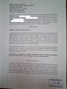 Općinski sud u Sarajevu odbacio je tužbu i naložio Alisi Ramić da plati troškove parničnog postupka u iznosu od 1.928,16 KM u roku od 30 dana.
