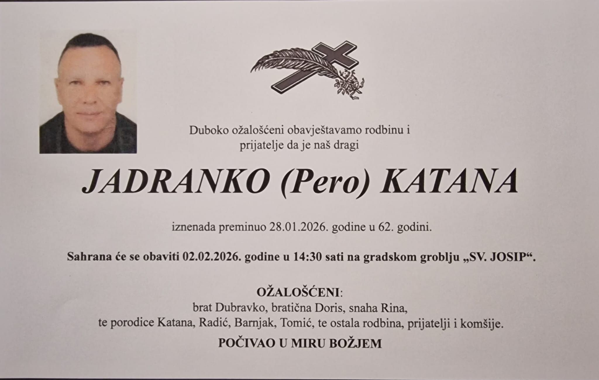 U 62. godini preminuo je Jadranko Katana dugogodišnji novinar Federalne televizije.