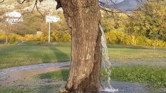Nakon intenzivnih kiša voda struji iz stabla tokom nekoliko dana dok se pritisak postepeno smanjuje kroz šupljinu u deblu.