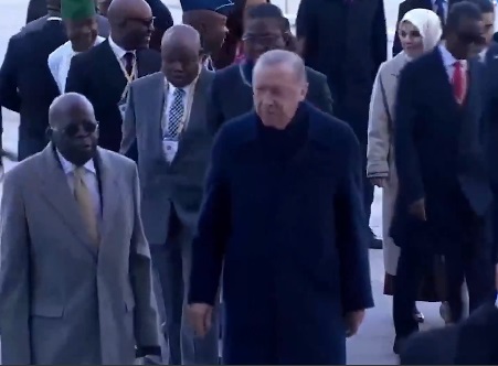 Nakon što je prošao pored linije vojnika i zvaničnika, Tinubu se u službenom videu na nalogu turskog predsjednika na X-u može vidjeti kako se pomjera udesno, zatim posrće i pada. Snimak kratko pokazuje ljude koji pomažu predsjedniku, prije nego što prelazi na snimak iz zraka, a 45 sekundi kasnije Tinubu i Recep Tayyip Erdogan viđeni su jedan pored drugog.