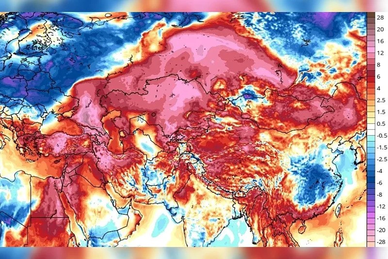 Veoma topao zrak posljednjih dana dominira cijelim područjem Kavkaza, bivšim sovjetskim republikama, ali i centralnim Sibirom. Na nekim lokacijama temperature su bile više za čak 20 °C od prosjeka, što je dovelo do rušenja brojnih vremenskih rekorda. Primjera radi, prosječne maksimalne temperature za Nazran u februaru iznose tek oko 4 °C, što dodatno naglašava ekstremnost izmjerenih 26,9 °C.