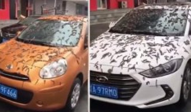 Snimak, za koji se veruje da je snimljen u Pekingu, fokusira se na nekoliko parkiranih automobila prekrivenih sitnim “crvima”.