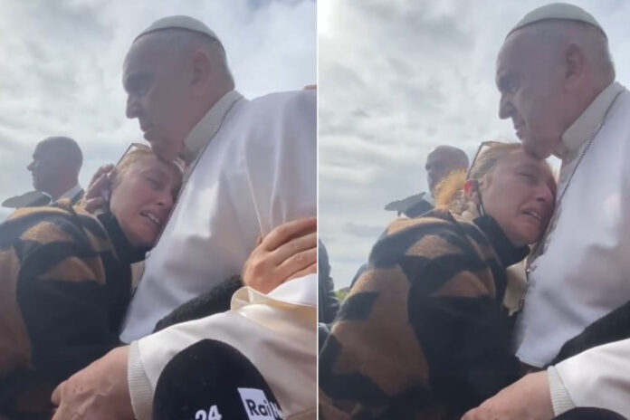 Vaša Svetosti, upoznali ste je jer ste 2019. došli u Casal Bertone i držali Angelicu u naručju – rekao je otac Matteo Rugghia kroz suze, dok papa tješi uplakanu Serenu Subania. prenosi hayat